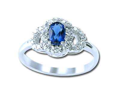 Synthetic Blue 6mm X 4mm Oval blue centre with 28 Cubic Zirconia accent stones