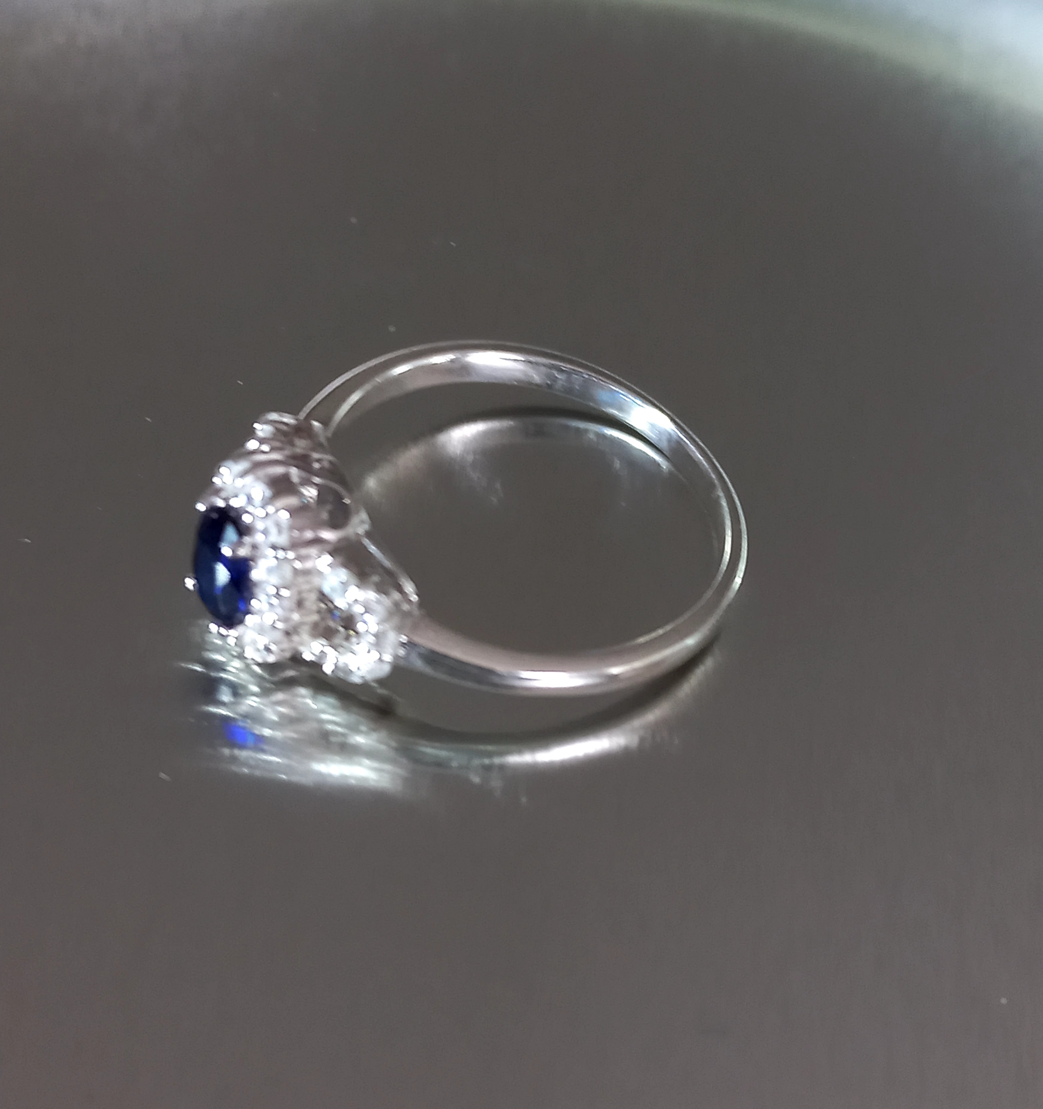 Synthetic Blue 6mm X 4mm Oval blue centre with 28 Cubic Zirconia accent stones